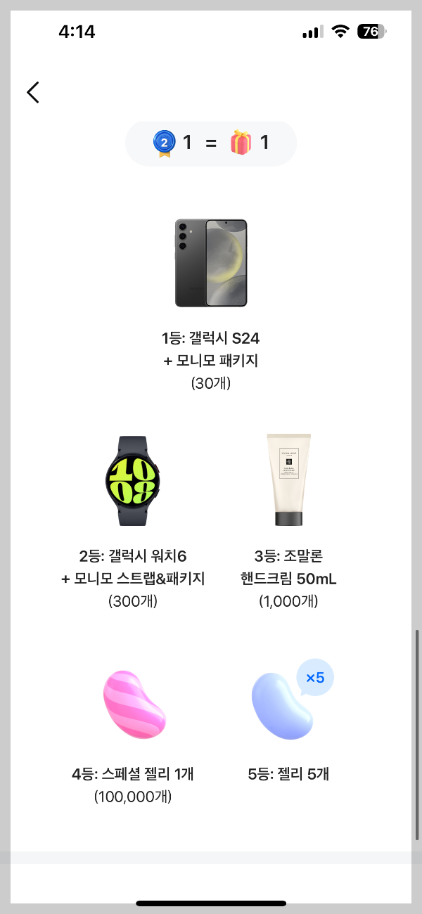 이번 이벤트는 모니모 2주년을 맞아 매달을 모으고 젤리도 주고, 모은 메달로 상품도 주는 이벤트를 진행하네요.